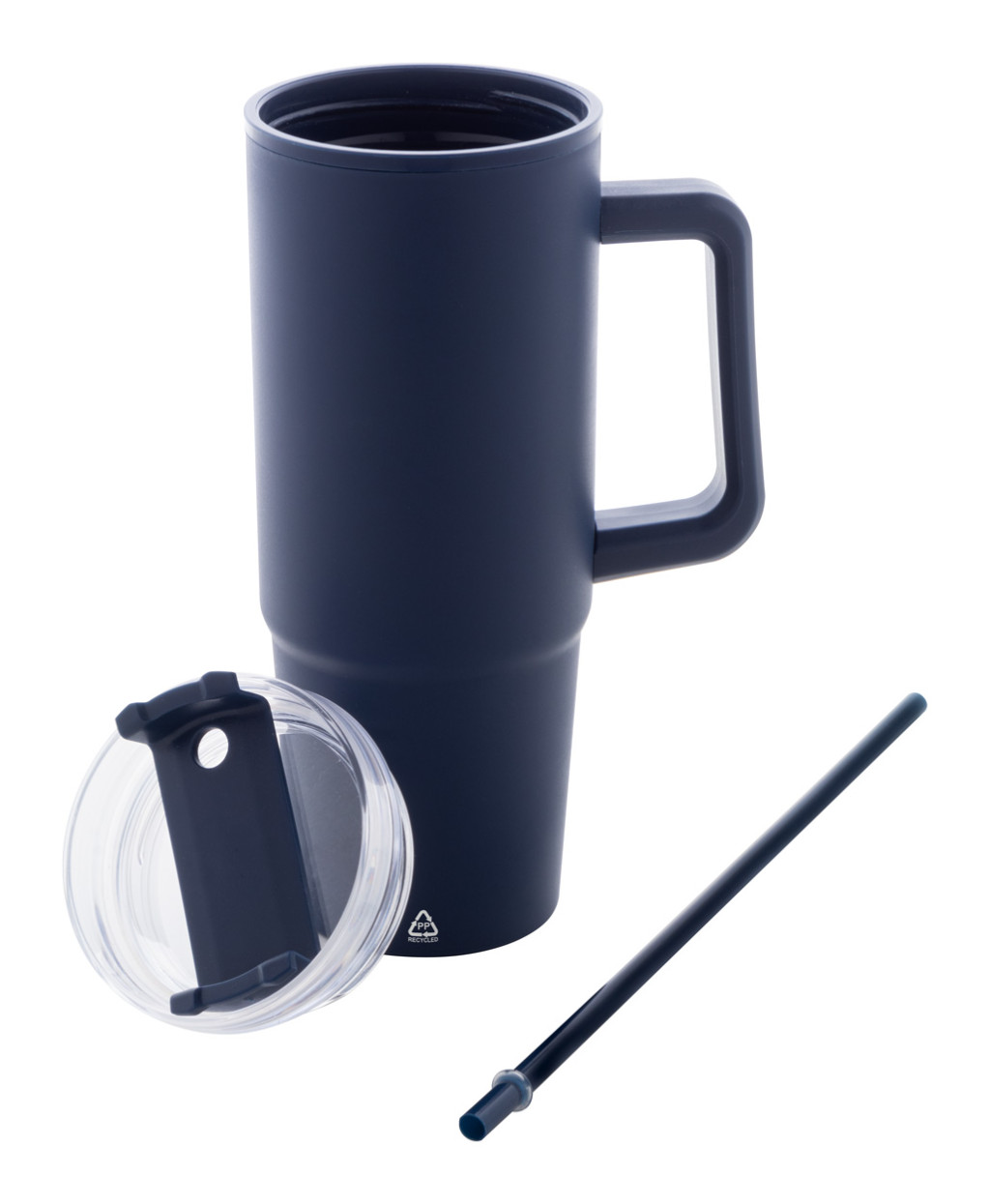 Duplafalú, újrahasznosított PP műanyag szigetelt thermo bögre műanyag ivófedéllel és szívószállal, 900 ml.