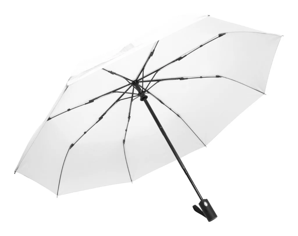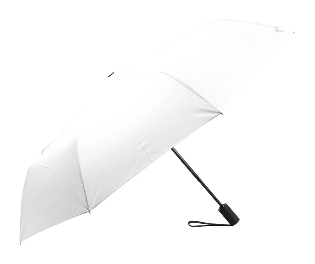 Teljesen automata (nyitás/zárás), szélálló, összecsukható esernyő 8 panellel, színben megegyező tasakban. Fém kerettel, üvegszálas bordákkal és gumírozott fogantyúval. 190T RPET pongee. Megkülönböztető RPET címkével.