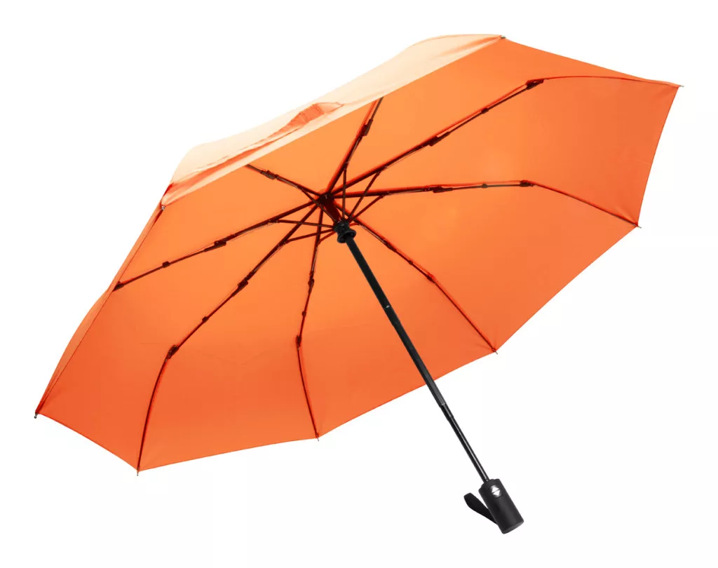 Teljesen automata (nyitás/zárás), szélálló, összecsukható esernyő 8 panellel, színben megegyező tasakban. Fém kerettel, üvegszálas bordákkal és gumírozott fogantyúval. 190T RPET pongee. Megkülönböztető RPET címkével.