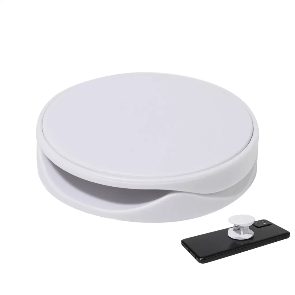 Kerek, újrahasznosított ABS mobiltartó öntapadós talppal.