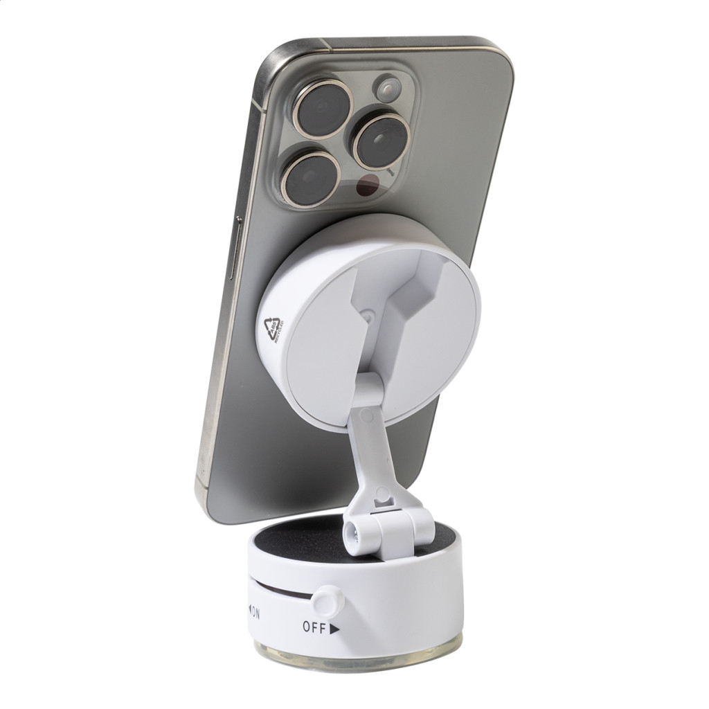 Újrahasznosított ABS mágneses autós mobiltartó vákuumos tapadókoronggal. Öntapadós fémgyűrűvel a mágneses felület nélküli telefonokhoz.