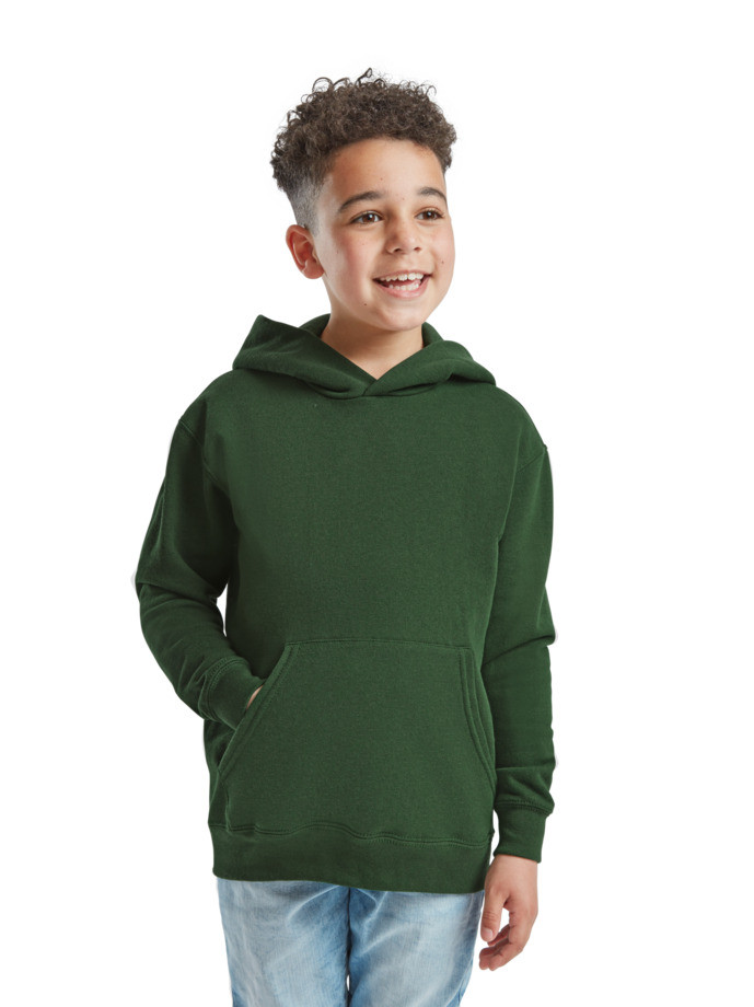 Kapucnis pamut/Lycra® anyagú gyerek pulóver dupla anyagú kapucnival összehúzó nélkül, európai gyerekméretezésnek megfelelő. Első kenguruzseb, bordázott derékrész és ujjvég. Tisztább és tartósabb emblémázhatóság érdekében a gyártó Belcoro® fonalat has