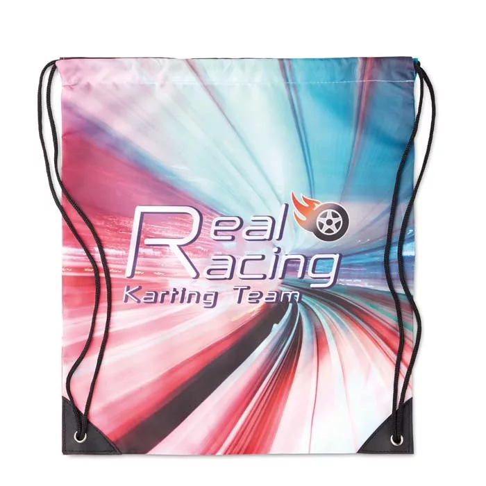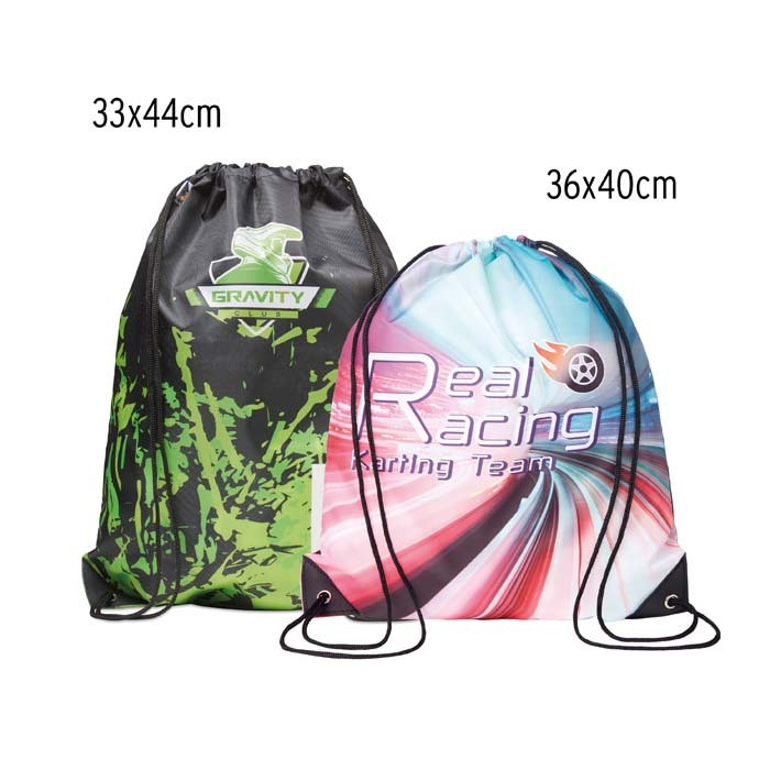 Húzózsinóros táska 210D poliészterből, PU megerősített sarkokkal. A húzózsinóros záródás könnyű hozzáférést biztosít a táska tartalmához, ugyanakkor használat közben biztonságosan a helyén tartja azt.