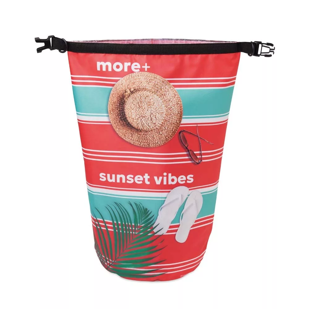 Ezek a vízhatlan, roll-top csavart záródással ellátott táskák ha vízbe esnek, biztonságosan a felszínen maradnak, és kiváló védelmet nyújtanak nedves vagy esős körülmények között. A nagy felület bőséges helyet biztosít az Ön 360°-os nyomtatott dizájnjának. Tartós és sokoldalú kialakításának köszönhetően ez a táska tökéletes társ a szabadtéri kalandokhoz – Önnek és ügyfeleinek egyaránt.