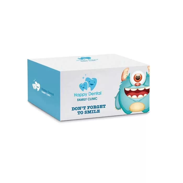 Papír jegyzettömb (EU-ban gyártva) az Ön által tervezett dizájnnal a 450 nem öntapadós lap mindegyikén. Választhat, hogy 1, 2 vagy 4 mintát ad a kocka négy oldalára. A nyomdaszínekhez számolja össze az oldalakon lévő összes mintát.
