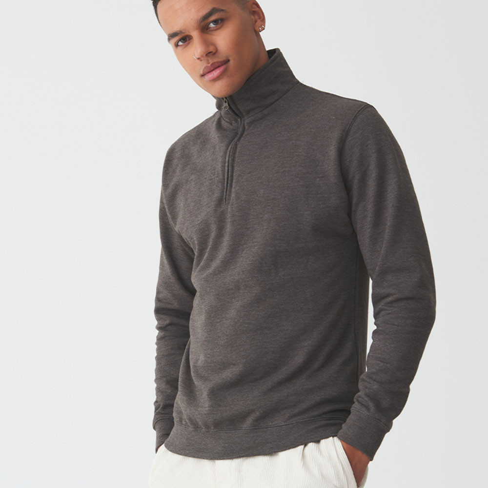 80% Ringspun Cotton/20% Polyester 1 zip neck Metal YKK zipper and puller Ribbed cuffs and hem Brushed inner fleece Simple tear out label makes it perfect for rebranding Soft cotton faced fabric creates ideal printing surface Worldwide Responsible Accredited Production (WRAP) certified production