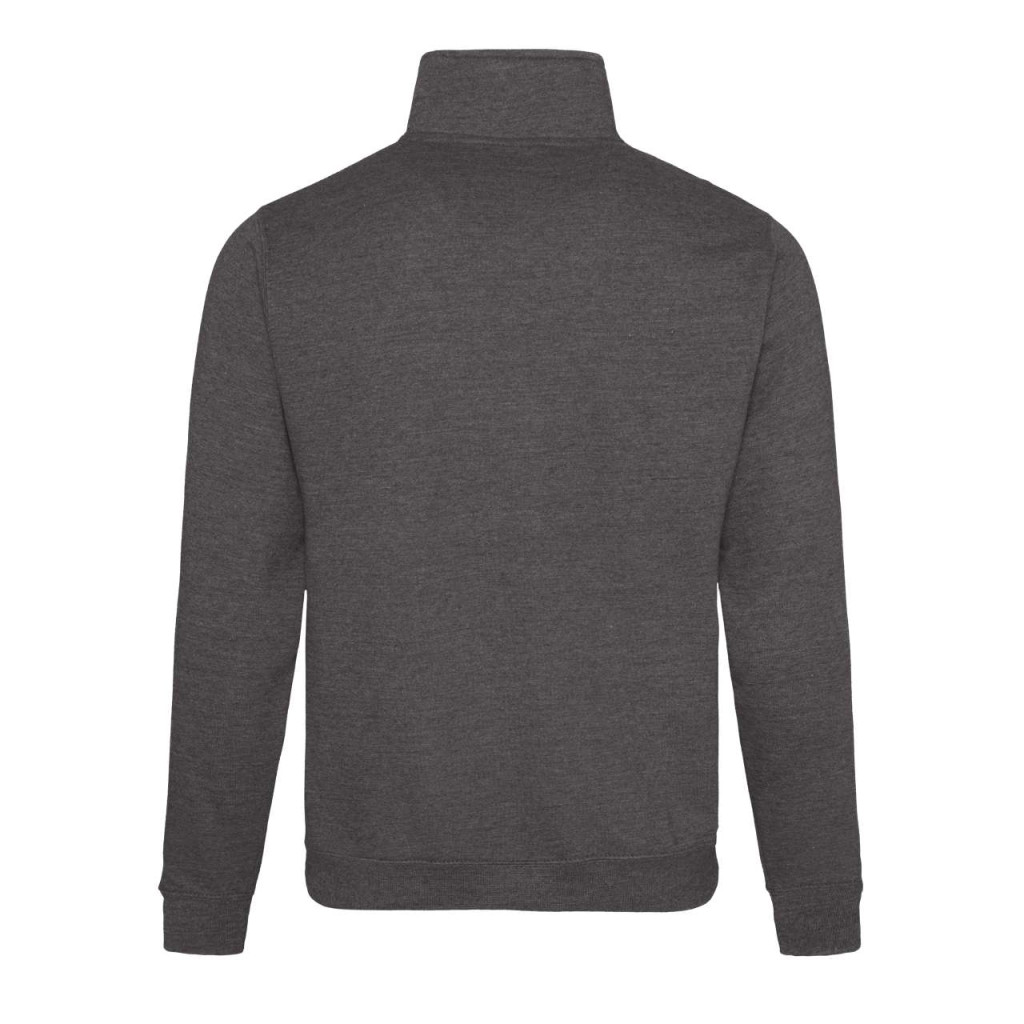 Nyak cipzáras kialakitású pulóver a Just Hoodstól. Fém YKK cipzár, bordás ujjvégek, kitéphető cimke, puha pamut anyag. WRAP tanúsitott gyártás (felelős munkavédelem).