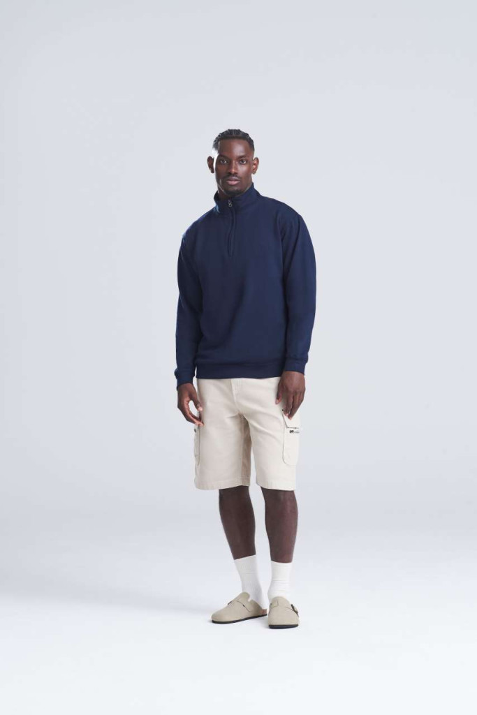 Nyak cipzáras kialakitású pulóver a Just Hoodstól. Fém YKK cipzár, bordás ujjvégek, kitéphető cimke, puha pamut anyag. WRAP tanúsitott gyártás (felelős munkavédelem).