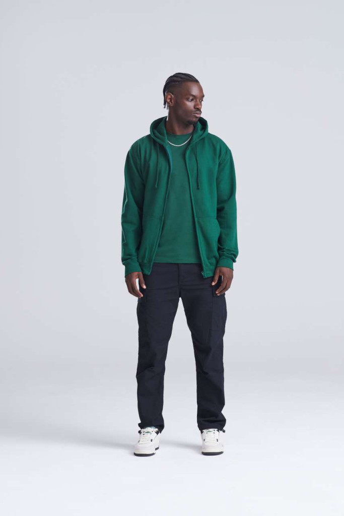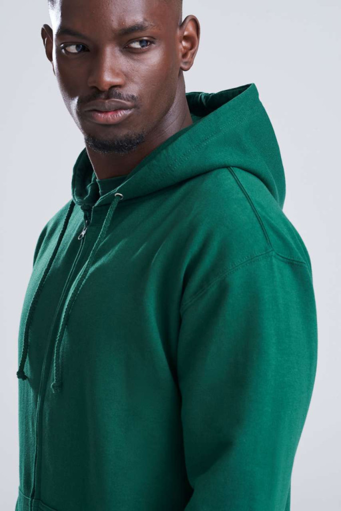 A ZOODIE a Just Hoods legismertebb modellje, felnőtt és gyermek méretben egyaránt rendelhető. 80% pamutból készült, kapucnis és zipzáras tipus, bordás ujjvégekkel és derékrésszel. Két kenguruzsebbel, amelyből a jobb oldaliban rejtett kivágást találunk a fejhallgató kébelnek. Kitéphető cimkés modell, akár saját márkaruházat kialakitására is alkalmas.