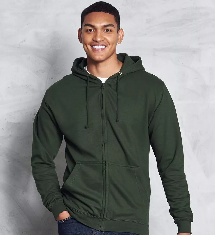 A ZOODIE a Just Hoods legismertebb modellje, felnőtt és gyermek méretben egyaránt rendelhető. 80% pamutból készült, kapucnis és zipzáras tipus, bordás ujjvégekkel és derékrésszel. Két kenguruzsebbel, amelyből a jobb oldaliban rejtett kivágást találunk a fejhallgató kébelnek. Kitéphető cimkés modell, akár saját márkaruházat kialakitására is alkalmas.