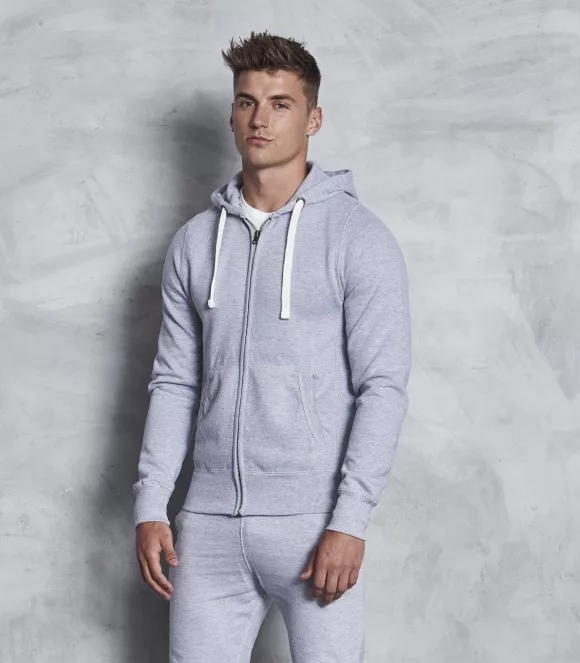 80% Ringspun Cotton/20% Polyester Full-zip hoodie Side panels for stylish fit Brass zip covered with chunky rib detail Overlock stitching detail throughout Double fabric hood with heather grey waffle fabric inner Chunky white flat lace drawcords Kangaroo pouch pocket Deep ribbed cuff and hem Brushed inner fleece Simple tear out label makes it perfect for rebranding Soft cotton faced fabric creates ideal printing surface Worldwide Responsible Accredited Production (WRAP) certified production