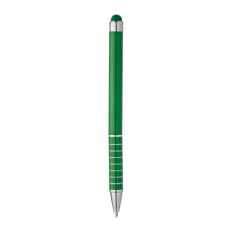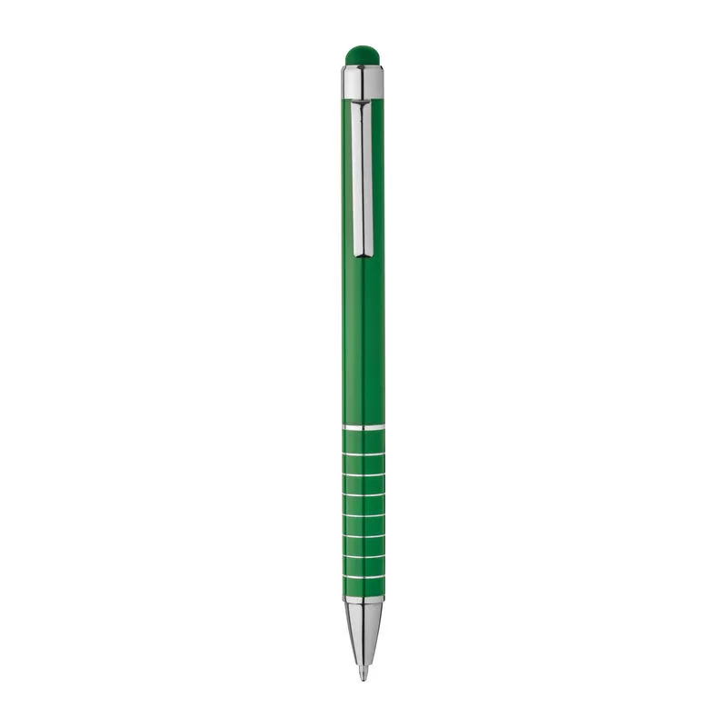 Csavaró mechanikás fém golyóstoll érintőképernyős funkcióval, kék tollbetéttel és 8 díszítő gyűrűvel.