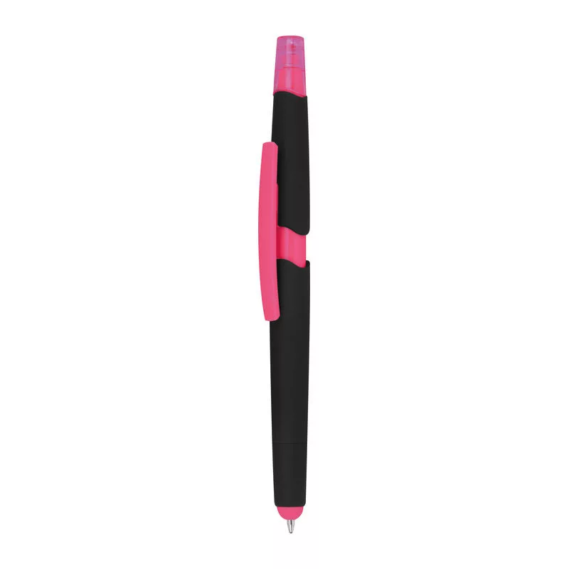 Műanyag golyóstoll szövegkiemelővel, gumírozott tolltesttel, kék tollbetéttel és érintőképernyős funkcióval.