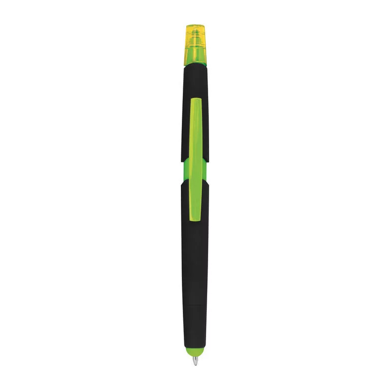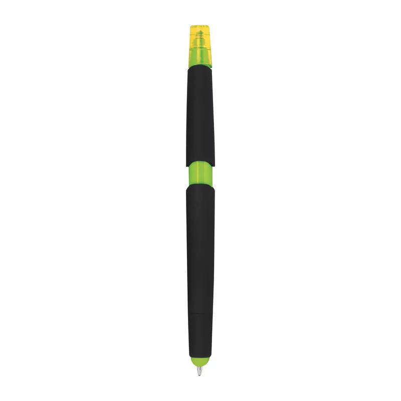 Műanyag golyóstoll szövegkiemelővel, gumírozott tolltesttel, kék tollbetéttel és érintőképernyős funkcióval.