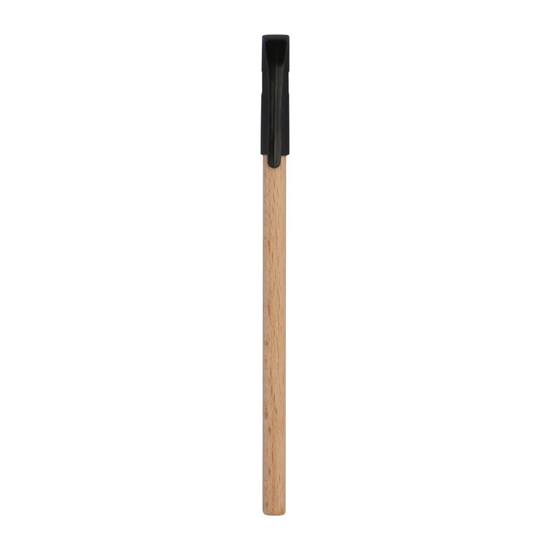 Praktikus, feketén író fa golyóstoll, fekete műanyag kupakkal.