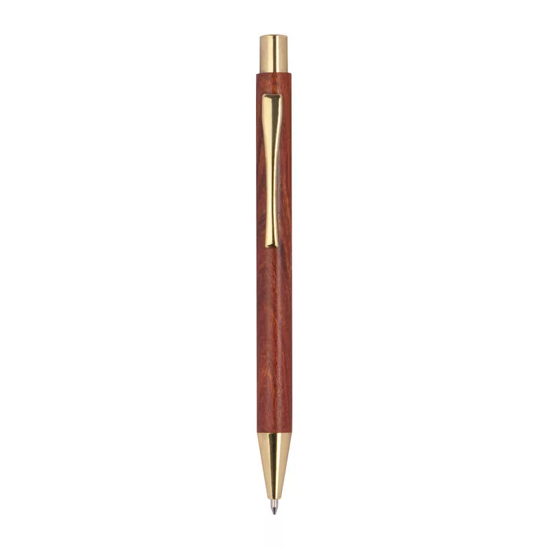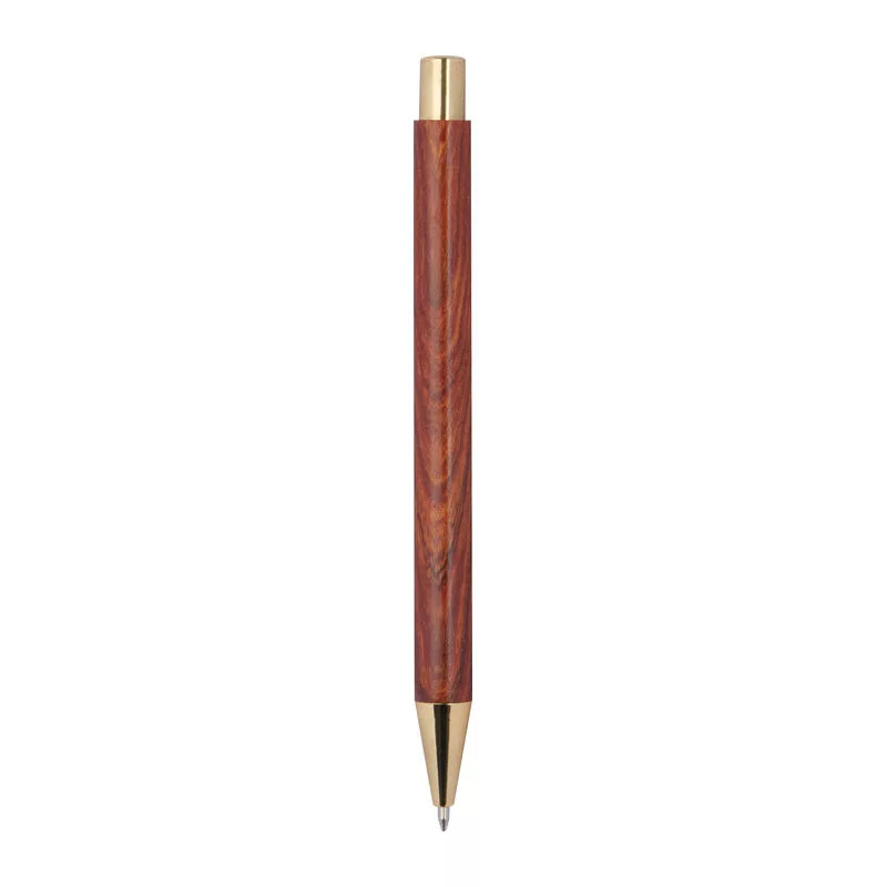 Fa testű elegáns golyóstoll, nagy kéken író tollbetéttel és arany színű kiegészítőkkel.