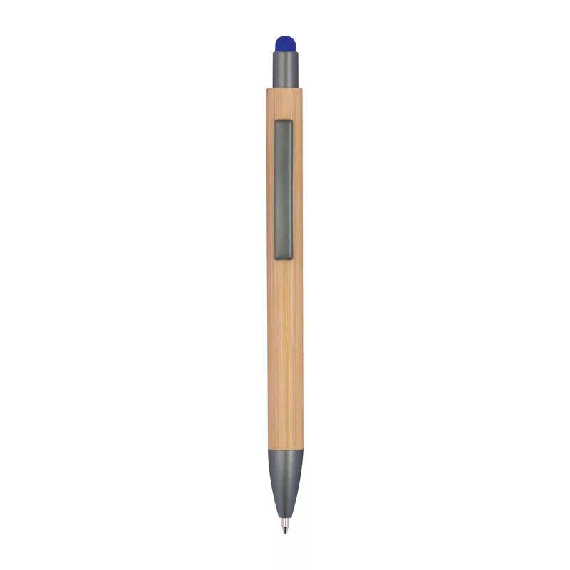 Környezetbarát, bambusz golyóstoll, nagy kéken író tollbetéttel, antracit színű kiegészítőkkel és érintőképernyő funcióval.