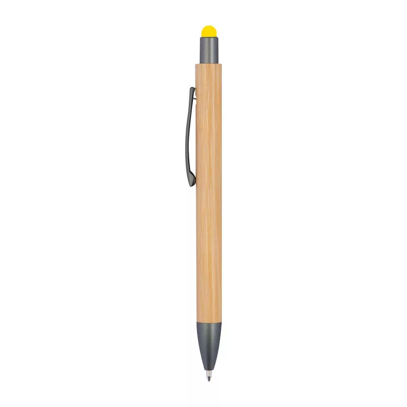 Környezetbarát, bambusz golyóstoll, nagy kéken író tollbetéttel, antracit színű kiegészítőkkel és érintőképernyő funcióval.