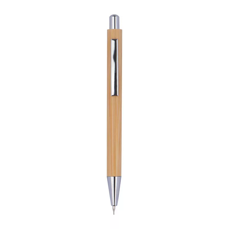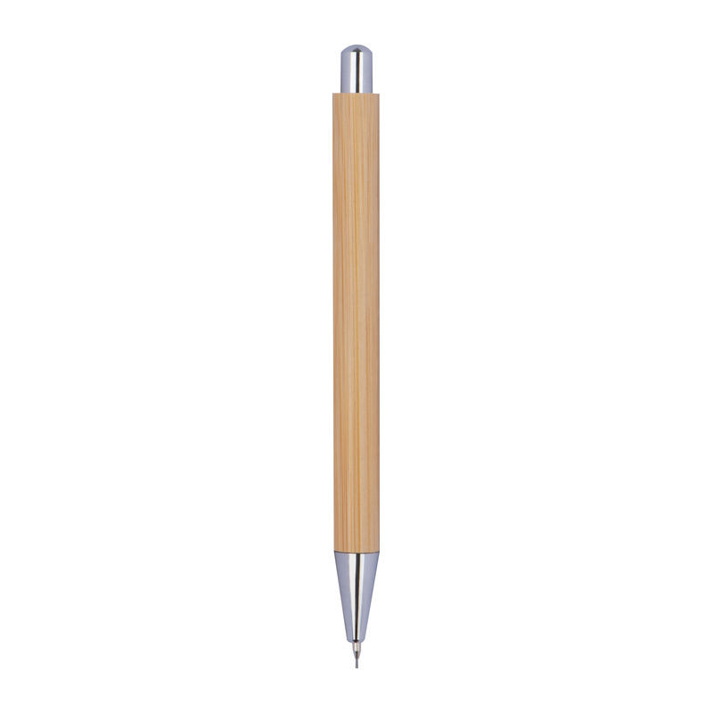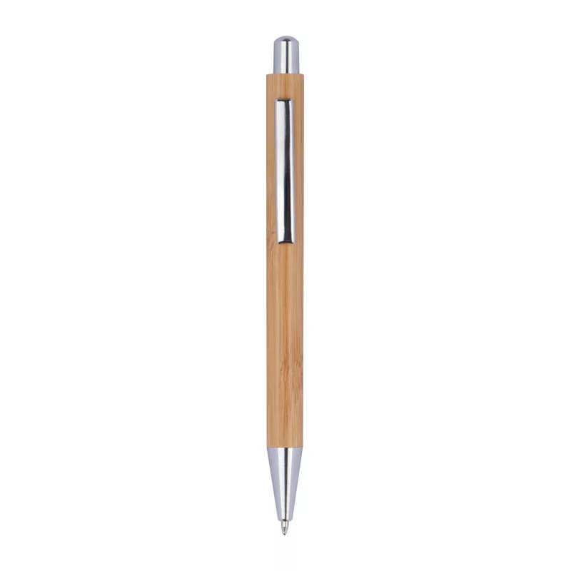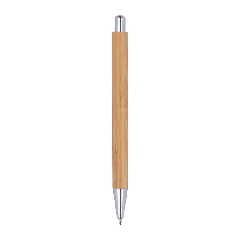 Bambusz toll szett, amelyik tartalmaz egy kéken író golyóstollat és egy mechanikus töltőceruzát, ezüst kiegészítőkkel. A készletet környezetbarát kartondobozban szállítjuk.