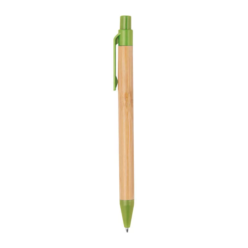 Környezetbarát, bambuszból készült golyóstoll búzaszalma kiegészítőkkel, kék tollbetéttel.