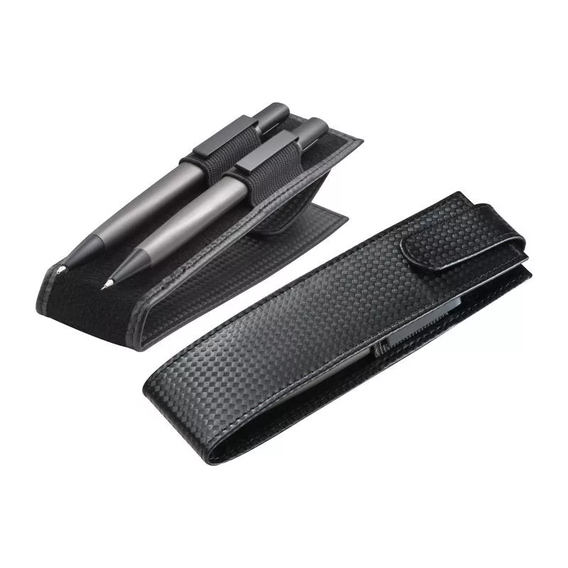 Fém toll szett kéken író golyóstollal és mechanikus töltőceruzával karbon hatású tokban. A toll formája teszi különlegessé a tollat.