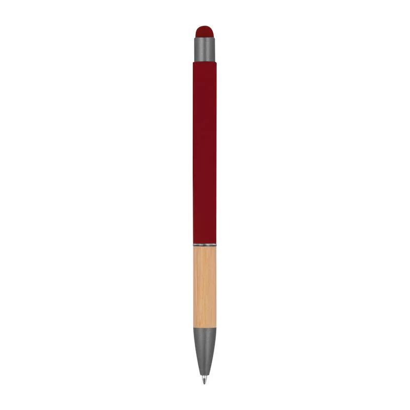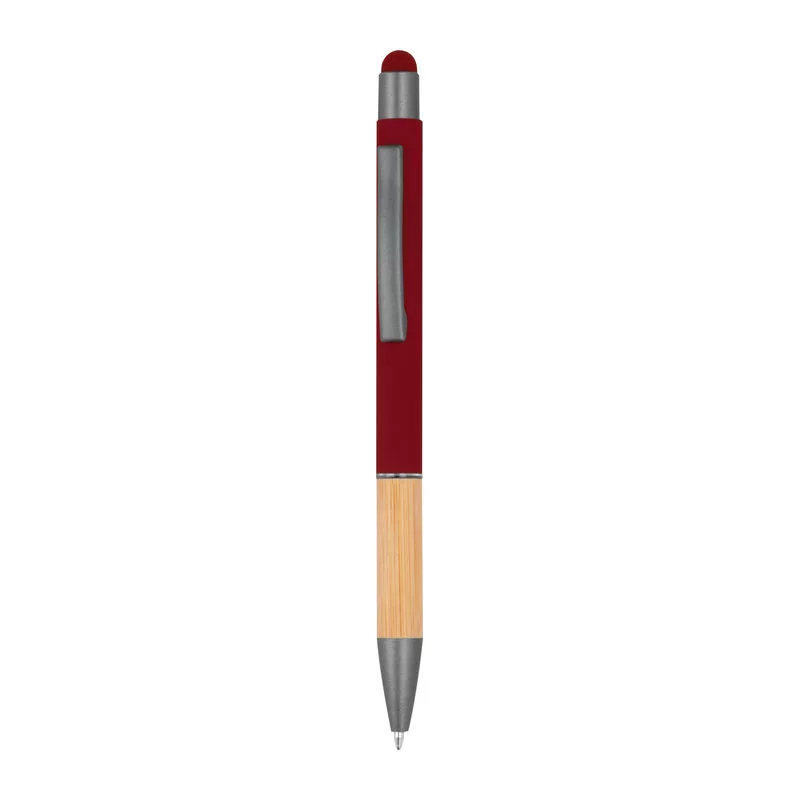 Alumínium toll, kéken író tollbetéttel, érintőképernyős funkcióval, matt, ezüst felületekkel és bambusz markolattal.