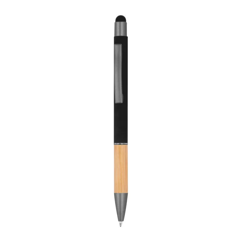 Alumínium toll, kéken író tollbetéttel, érintőképernyős funkcióval, matt, ezüst felületekkel és bambusz markolattal.