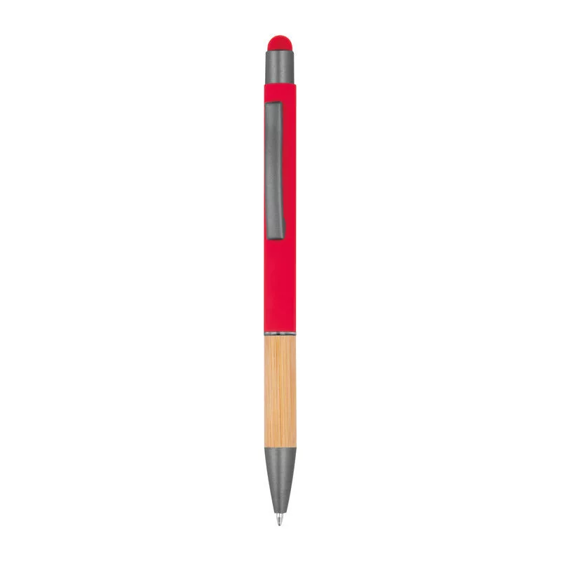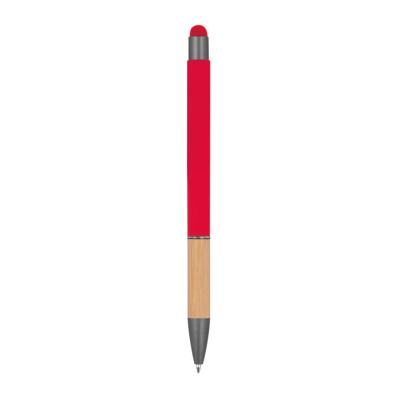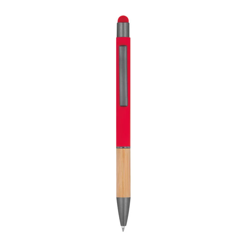 Alumínium toll, kéken író tollbetéttel, érintőképernyős funkcióval, matt, ezüst felületekkel és bambusz markolattal.