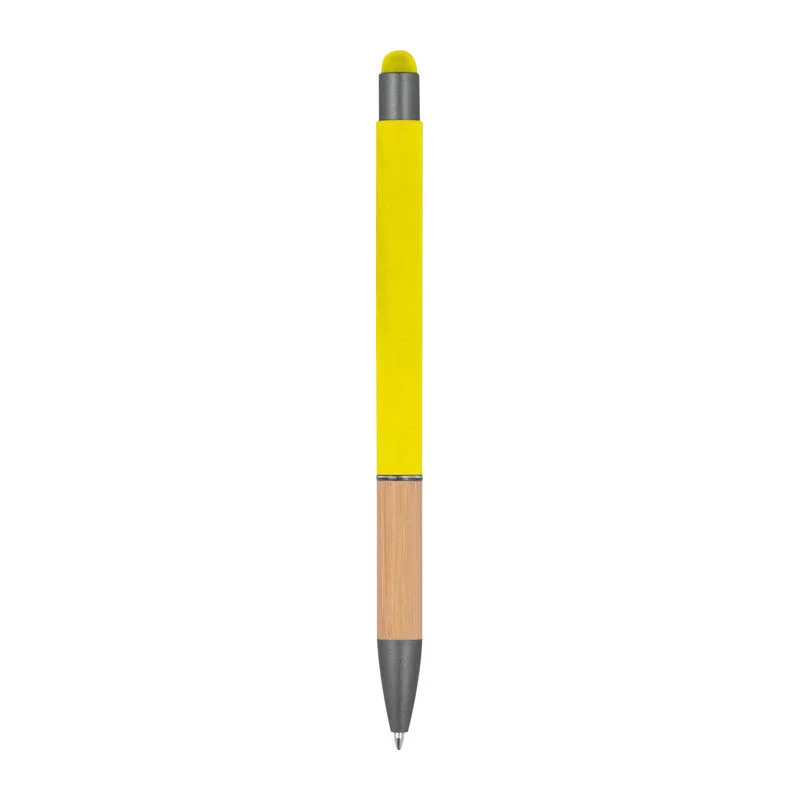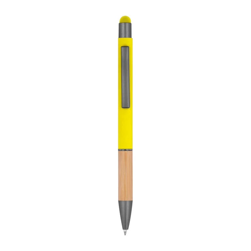 Alumínium toll, kéken író tollbetéttel, érintőképernyős funkcióval, matt, ezüst felületekkel és bambusz markolattal.