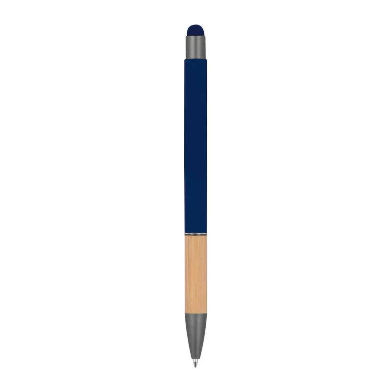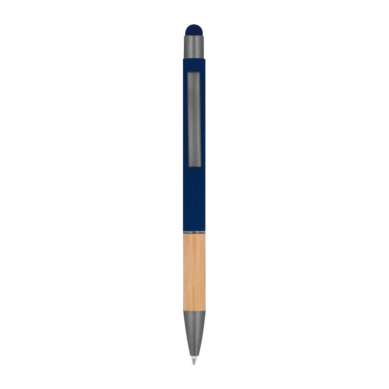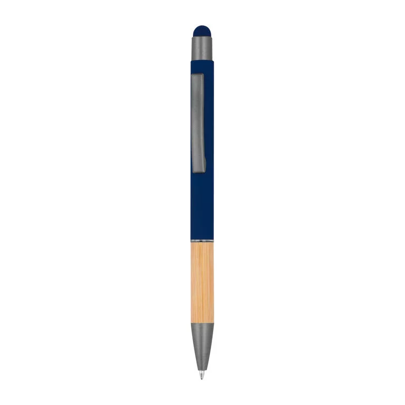 Alumínium toll, kéken író tollbetéttel, érintőképernyős funkcióval, matt, ezüst felületekkel és bambusz markolattal.