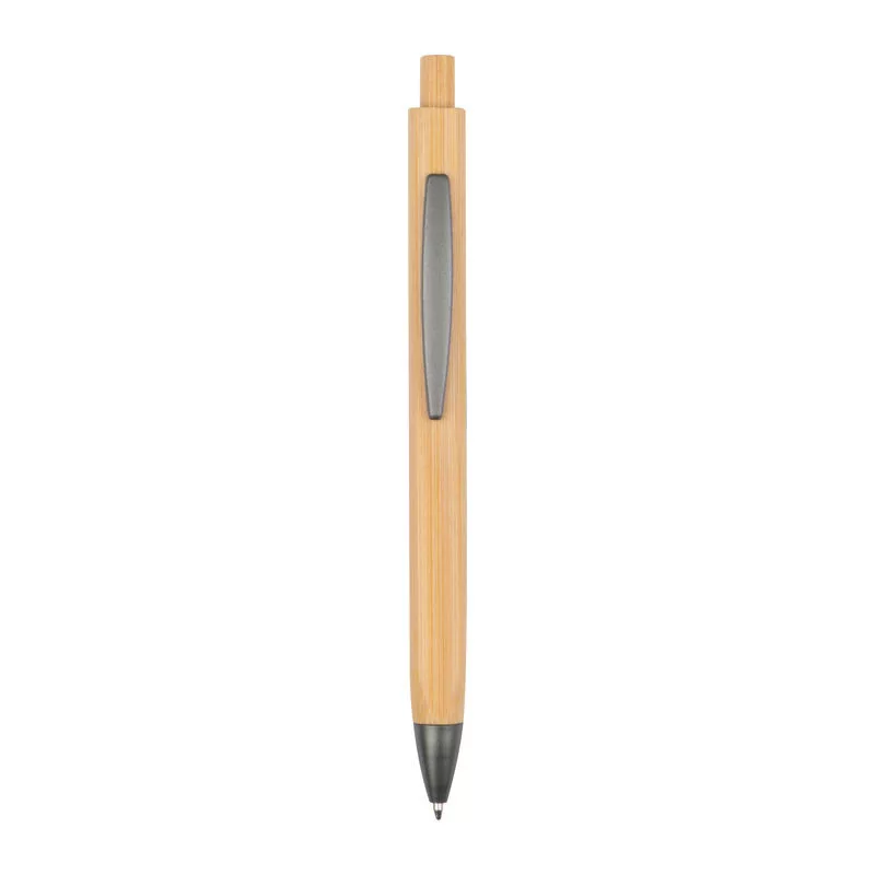 Kéken író bambusz golyóstoll fém kiegészítőkkel. Háromszög alakú formájának köszönhetően kényelmesen illeszkedik a kézbe.