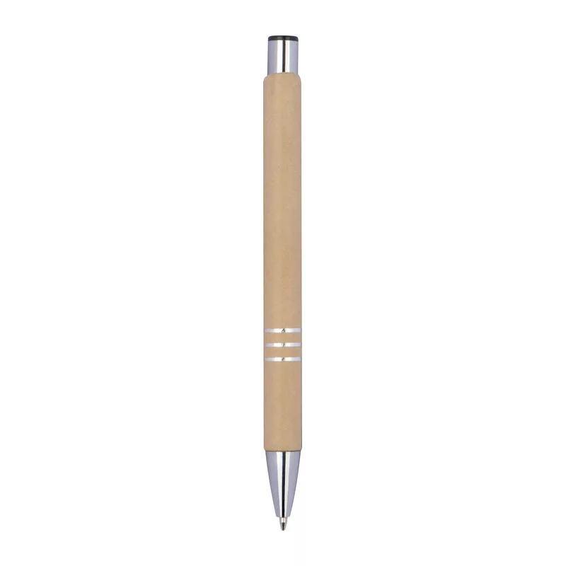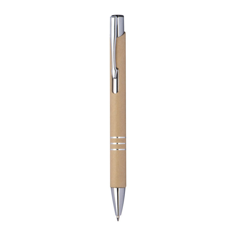 Újrahasznosított papírból készült környezetbarát golyóstoll, kéken író, 3 díszítő gyűrűvel ellátott.