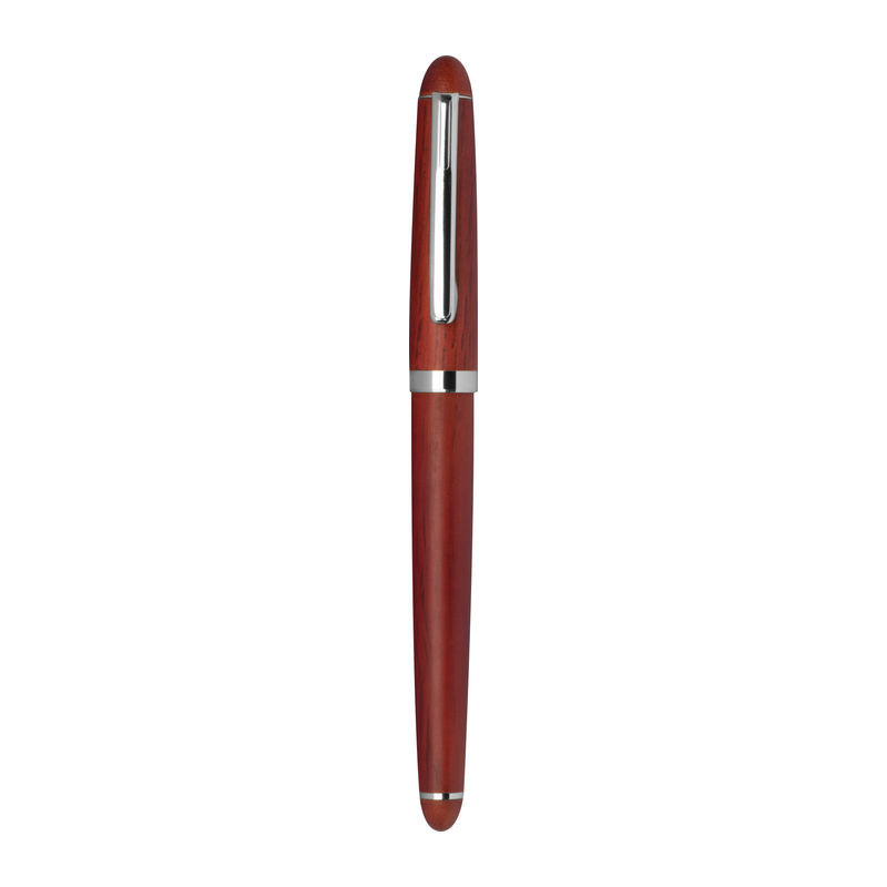Toll szett ezüst színű kiegészítőkkel (golyóstoll és töltőtoll kék patronnal) fa dobozban, melynek tetején a golyóstoll beállítható.