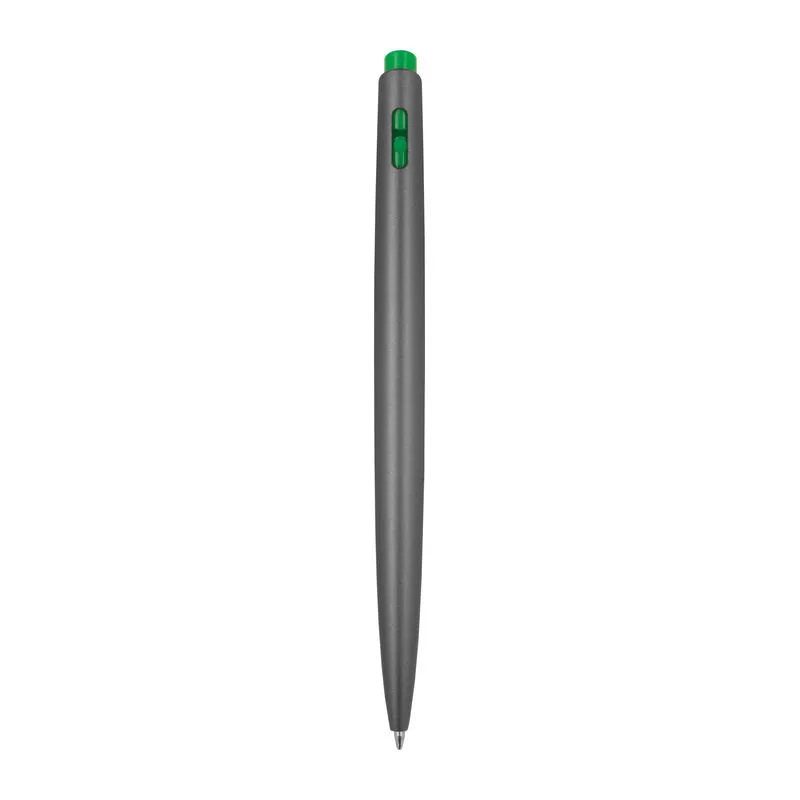 Nyomógombos golyóstoll újrahasznosított ABS-ből, színes díszítésekkel és kék színű, jumbo tollbetéttel.