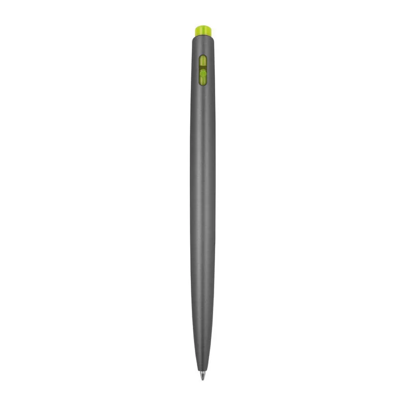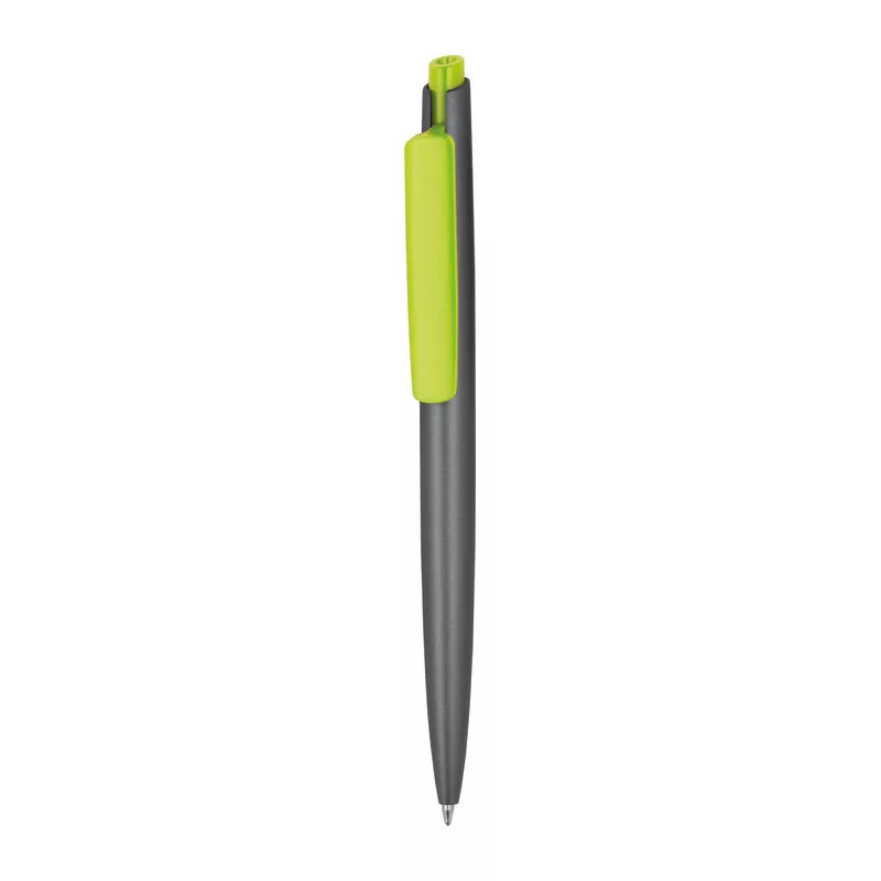 Nyomógombos golyóstoll újrahasznosított ABS-ből, színes díszítésekkel és kék színű, jumbo tollbetéttel.