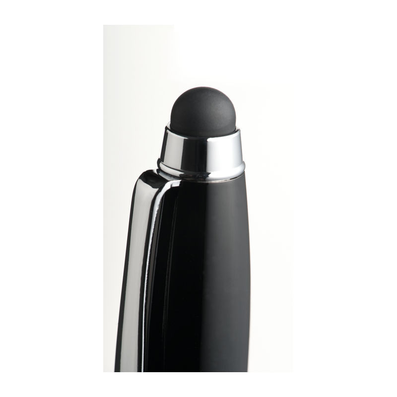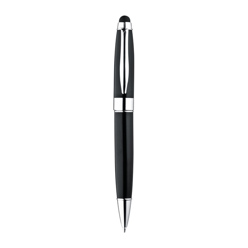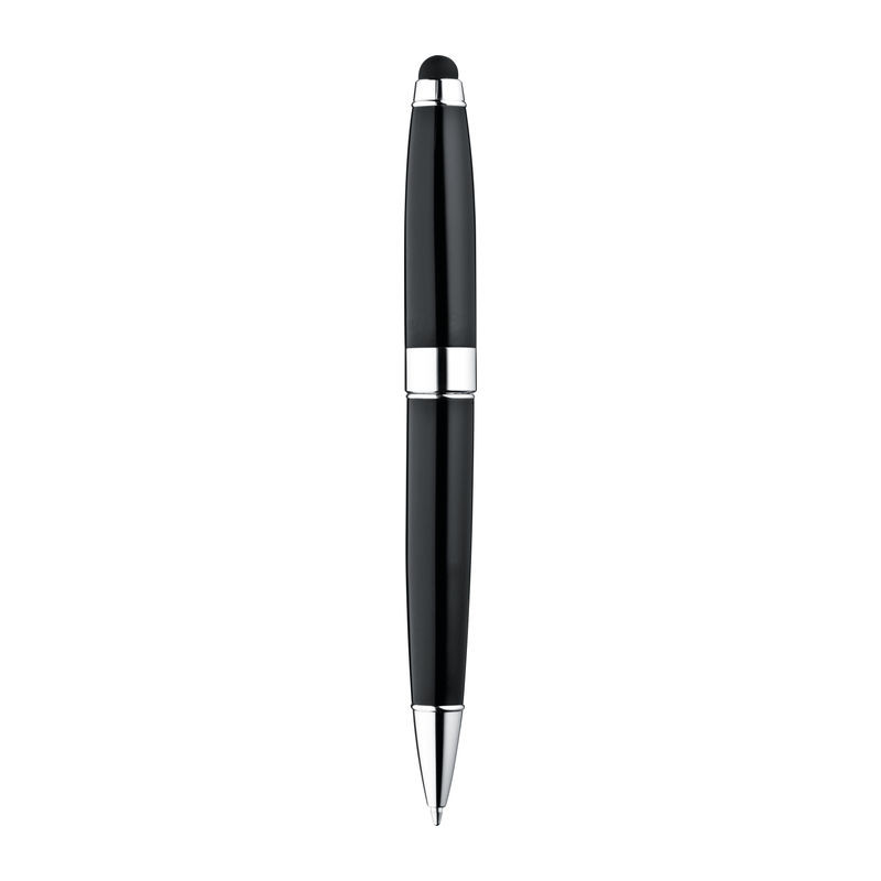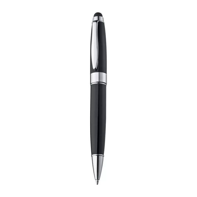 Klasszikus fém csavaró mechanikás toll, nagy kék betéttel. Okostelefonok és tabletek érintőképernyőihez is kiválóan használható.