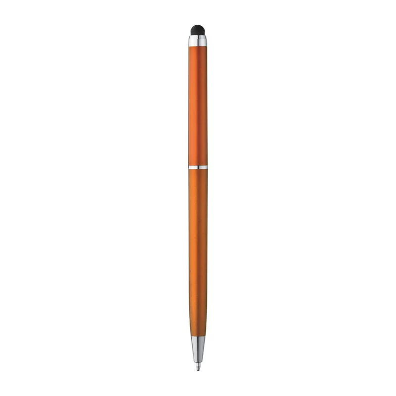 Elegáns, műanyag csavaró mechanikás vékonytestű toll, kék betéttel, érintő funcióval, mely alkalmas okostelefonok és tabletek érintőképernyőjéhez is.