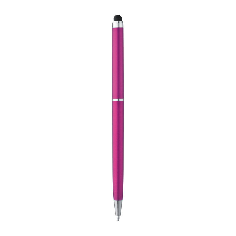 Elegáns, műanyag csavaró mechanikás vékonytestű toll, kék betéttel, érintő funcióval, mely alkalmas okostelefonok és tabletek érintőképernyőjéhez is.