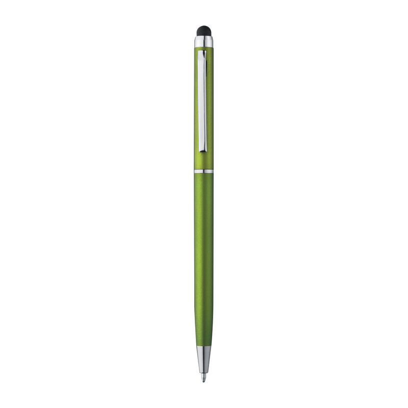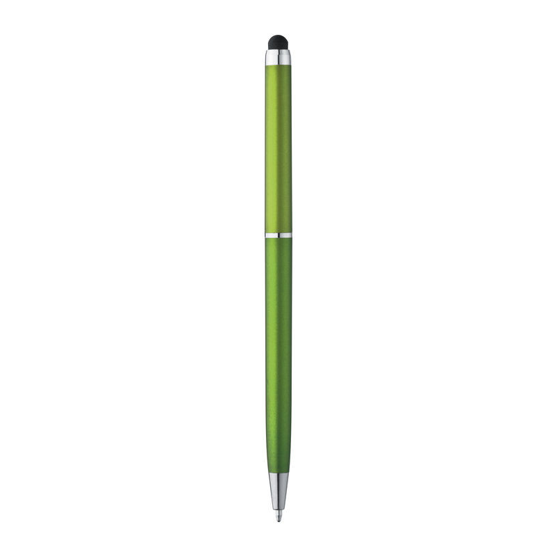 Elegáns, műanyag csavaró mechanikás vékonytestű toll, kék betéttel, érintő funcióval, mely alkalmas okostelefonok és tabletek érintőképernyőjéhez is.