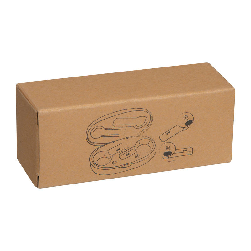 Bluetooth 5.0 fülhallgató 250 mAh akkumulátorral és töltésjelzővel, töltési idő 1 óra, működési idő kb 2-3 óra, hatótáv kb 10 m. Bambusz díszítésű mágneses tokban, USB-C töltőkábellel.