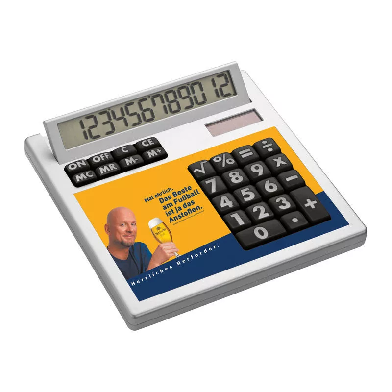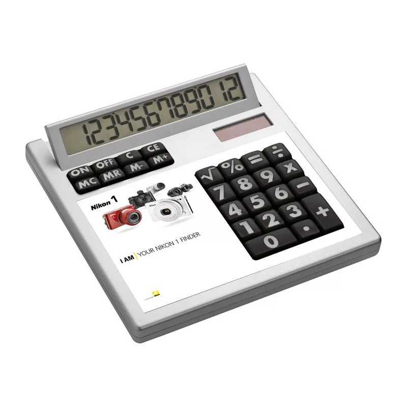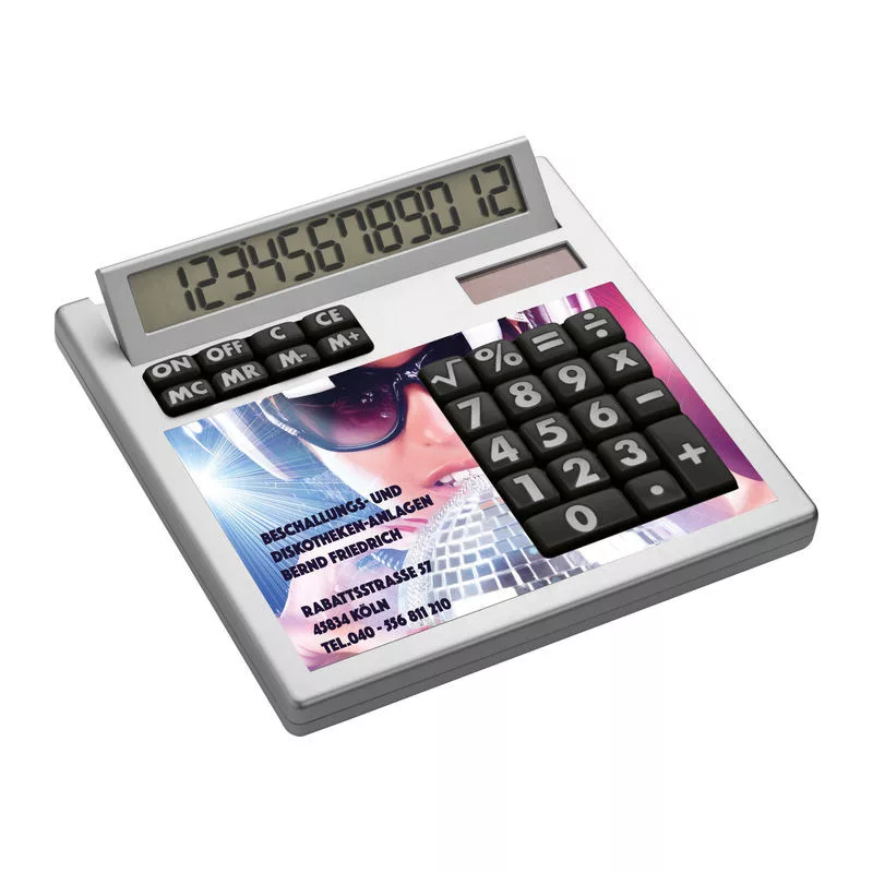 Számológép CrisMa dizájnnal, (12 kijelző kapacitás, dual power) műanyagból, ezüst színben. Alkossa meg egyedi számológépét, pont ahogy elképzelte!