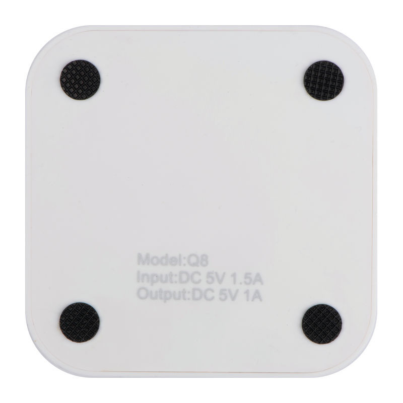 Műanyag vezeték nélküli mobiltelefon töltő 5W, 2xUSB csatlakozóval és USB-C töltőkábellal. Minden QI-kompatibilis okostelefon töltésére alkalmas. 5W, max.output 2100mAh