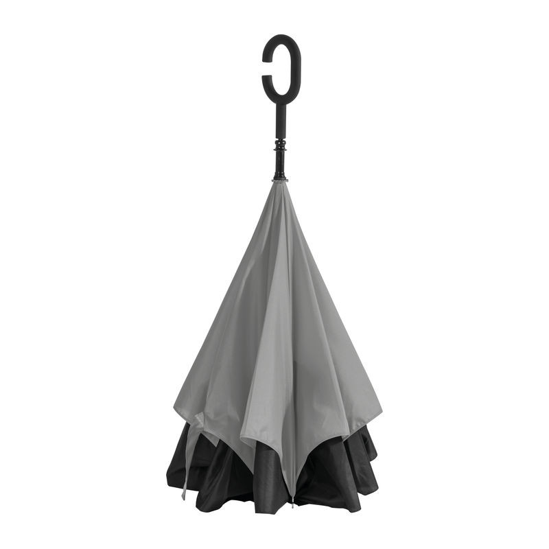 Újszerű, "fordítva működő" kiemelt minőségű, 190T pongee nyers selyemből készült esernyő, "C" fogantyúval, UV védelemmel.