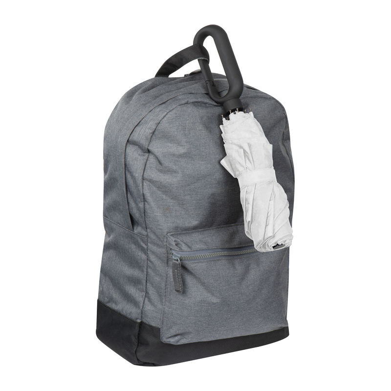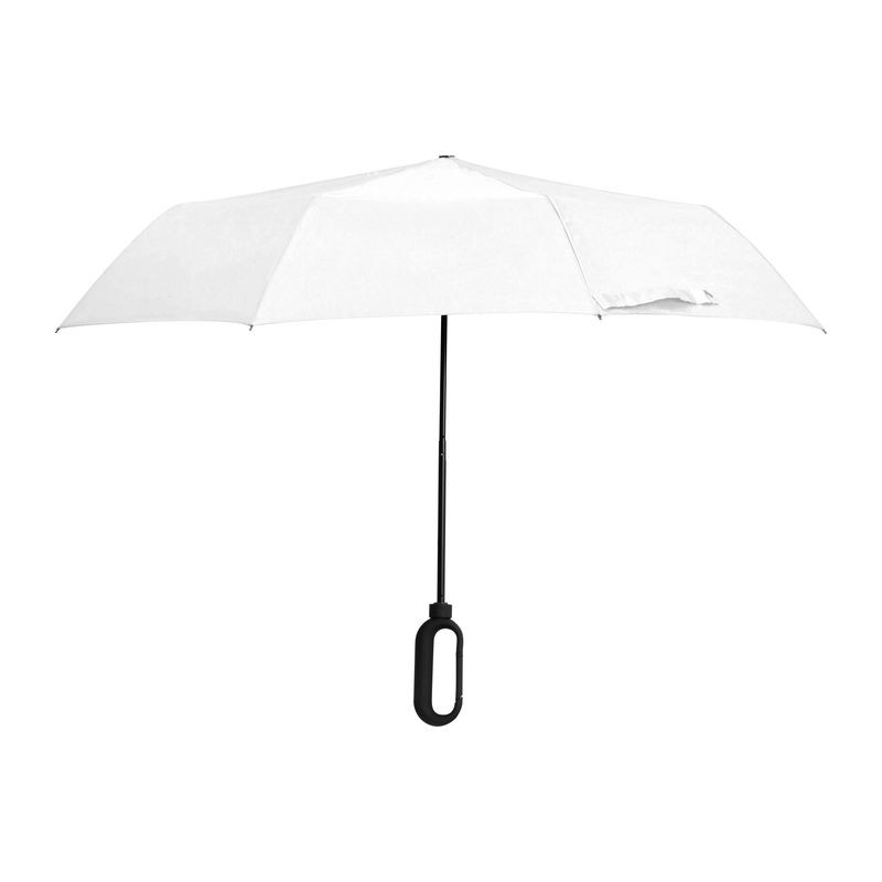 Mini összecsukható esernyő 190T pongee selyem anyagból, speciális, karabiner formájú gumírozott fogó résszel.