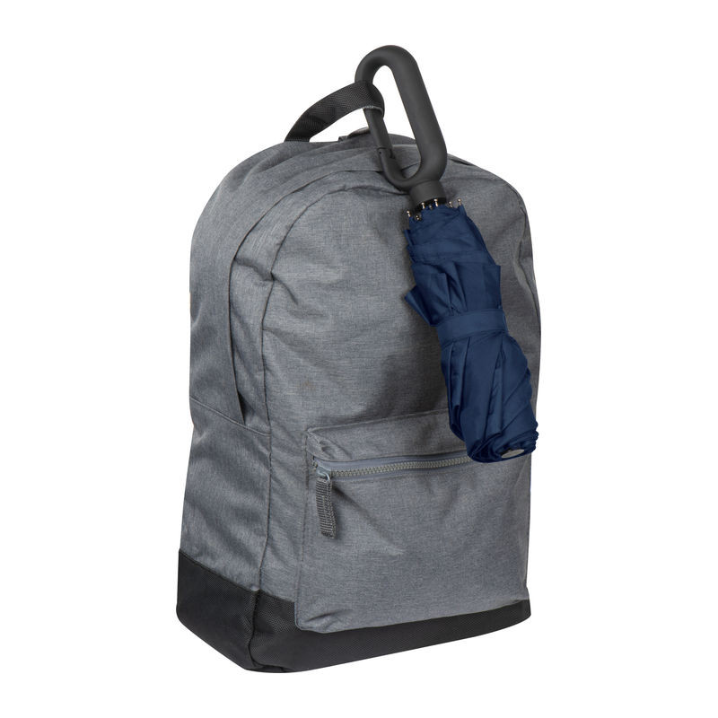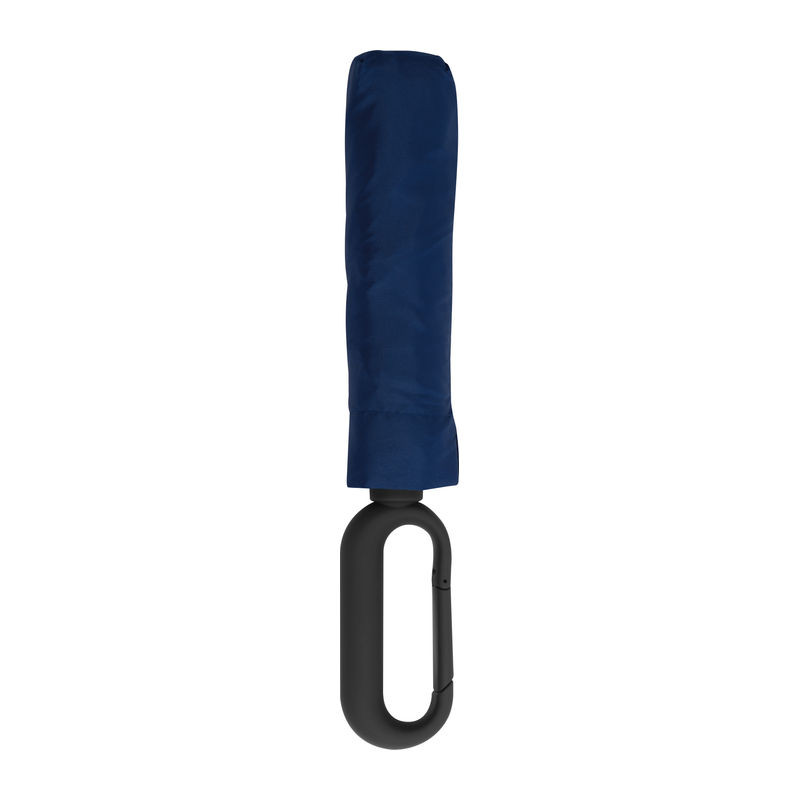 Mini összecsukható esernyő 190T pongee selyem anyagból, speciális, karabiner formájú gumírozott fogó résszel.