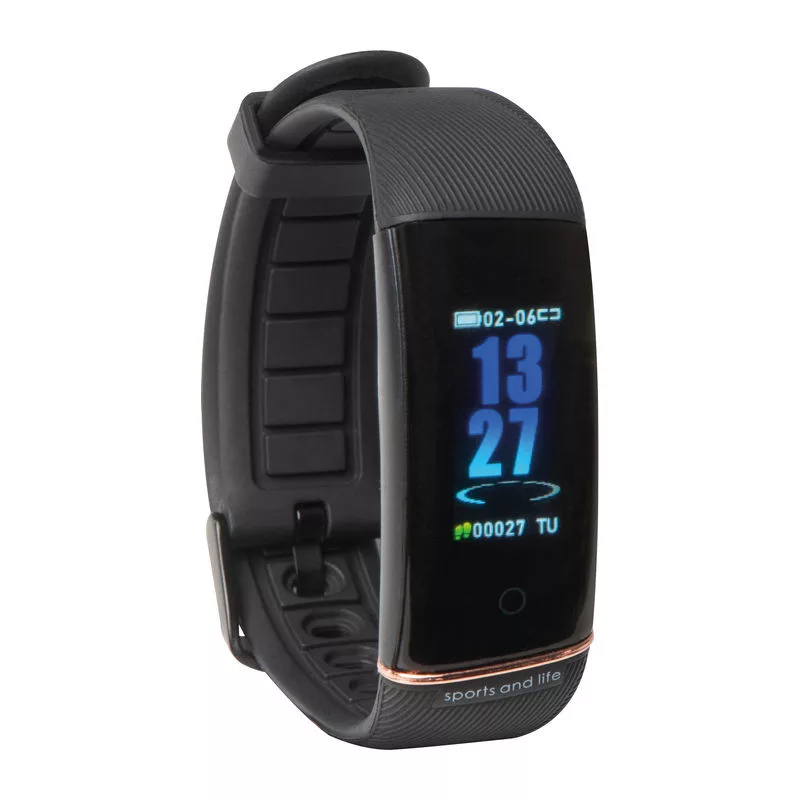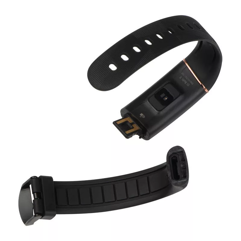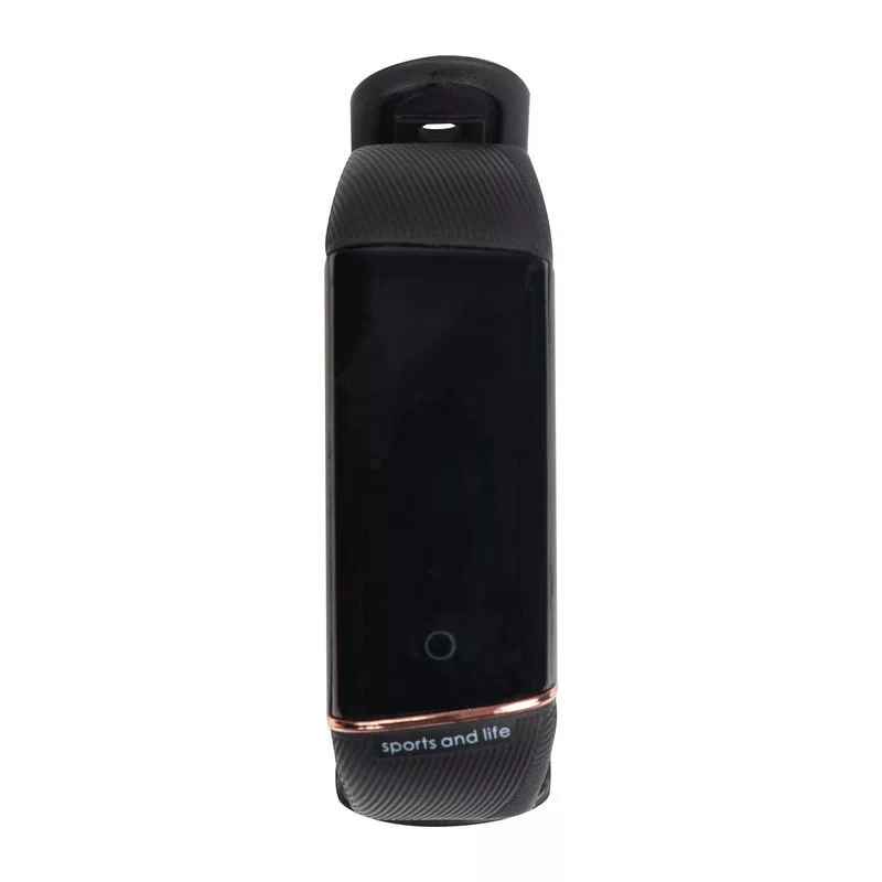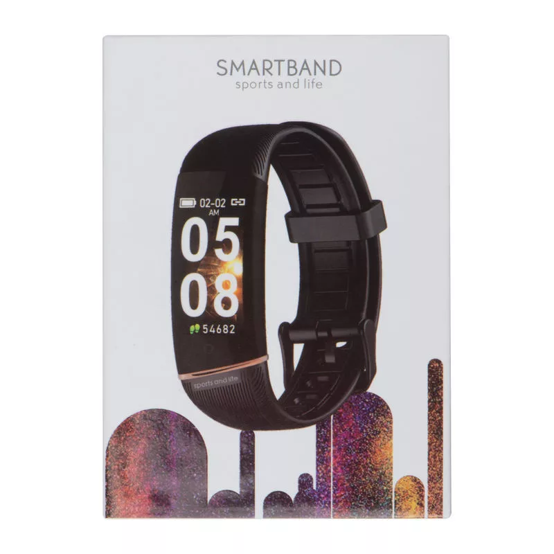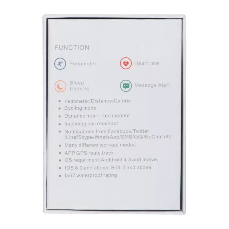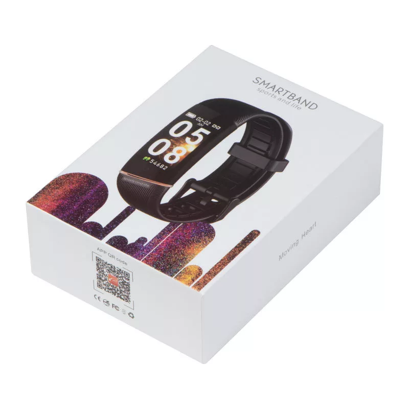 Szilikon fitness karkötő. Kompatibilis iOS 8.0, Android 5.1, BT 4.0 és újabb verziókkal. USB csatlakozón keresztül tölthető. Funkciók: dátum/idő kijelző, lépésszámláló, kalóriaszámláló, távolságmérő, szívritmus monitor, edző mód stb. App: My State.