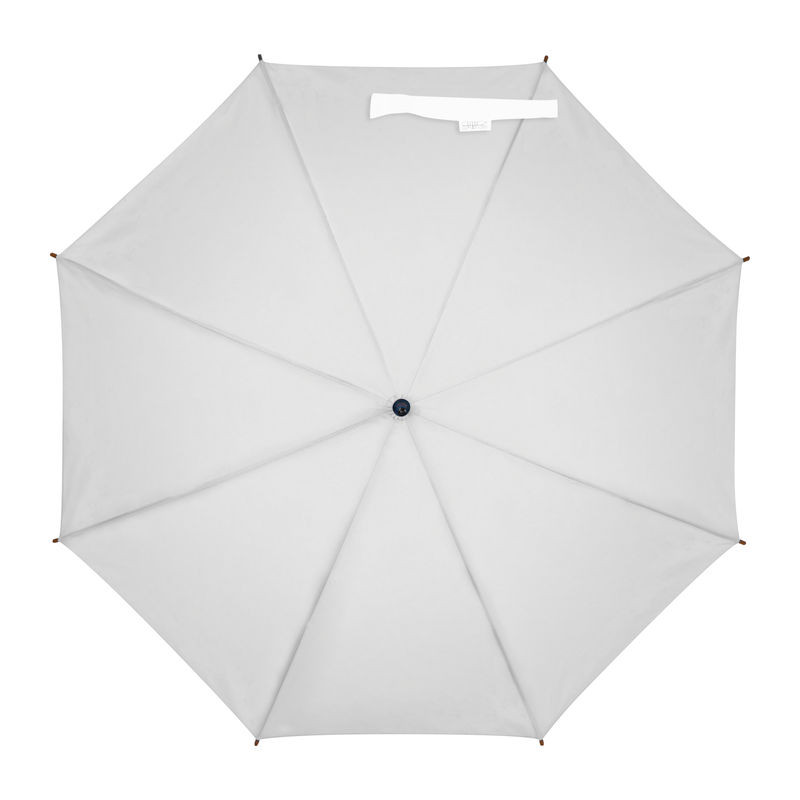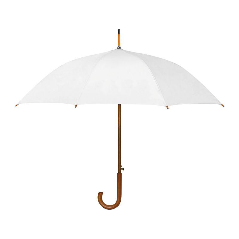 Kiváló minőségű automata nyitású esernyő újrahasznosított PET anyagból és ívelt fa fogantyúval.