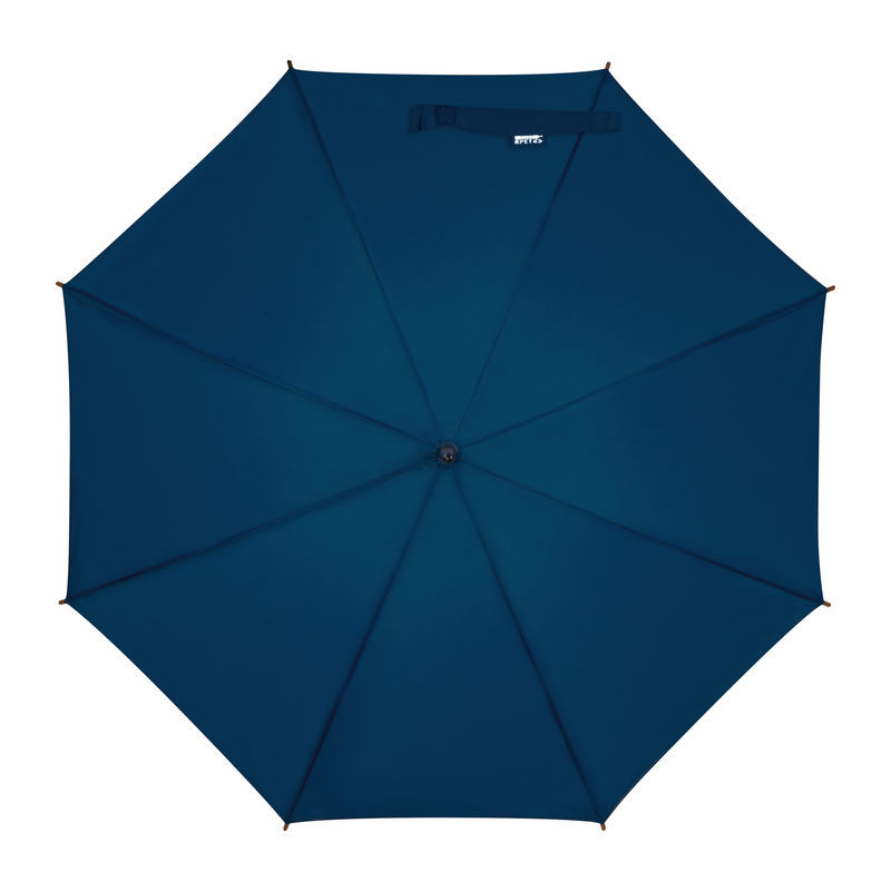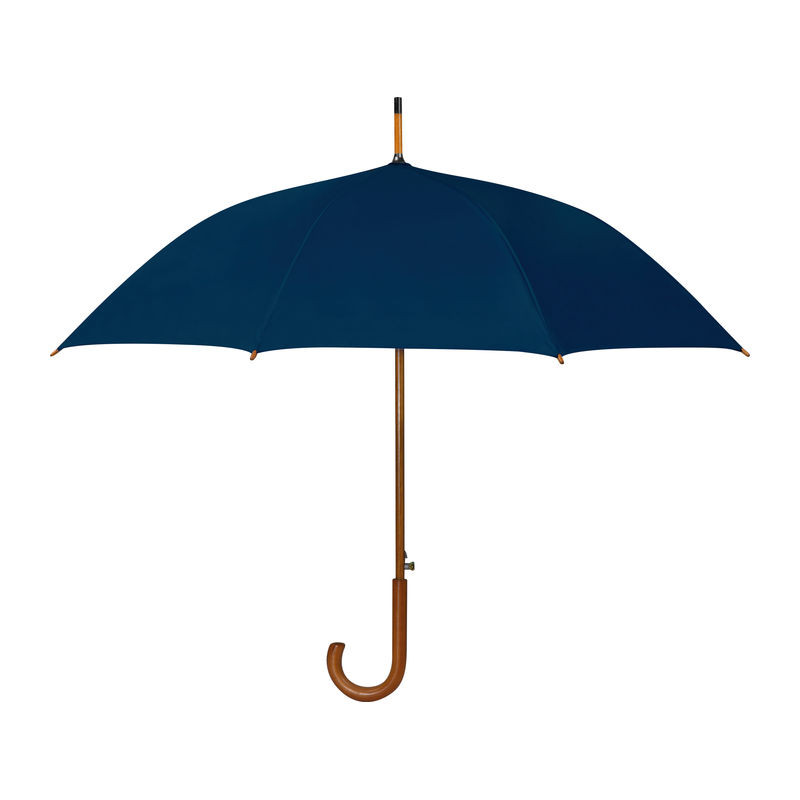 Kiváló minőségű automata nyitású esernyő újrahasznosított PET anyagból és ívelt fa fogantyúval.