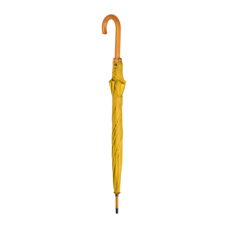 Favázas automata nyitású esernyő hajlított fa fogantyúval és fa csúccsal.