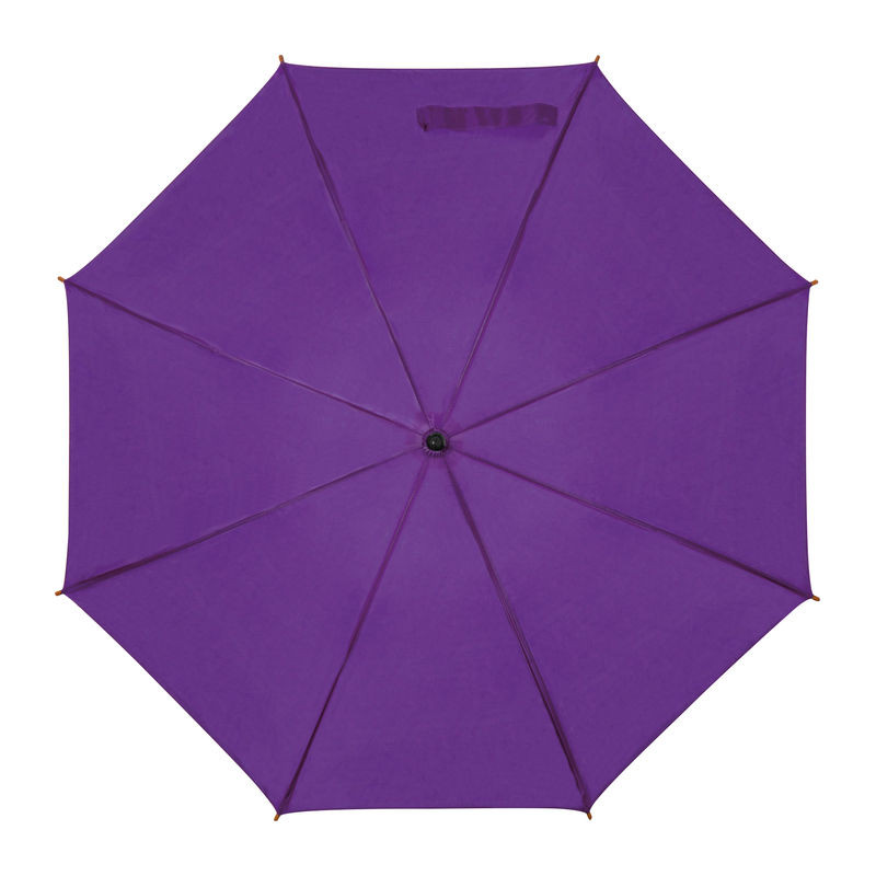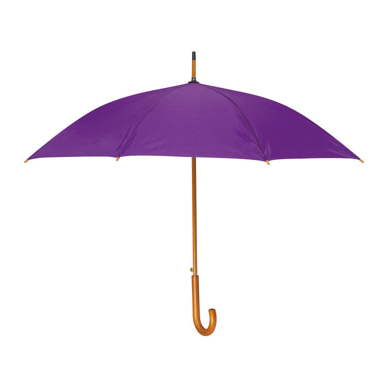 Favázas automata nyitású esernyő hajlított fa fogantyúval és fa csúccsal.